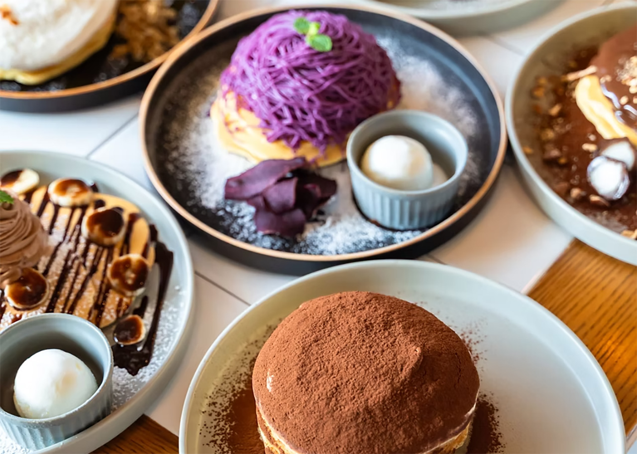 そして那覇国際通り店では、フォークを入れた瞬間ふわっと消える、魔法の口どけを持つスフレパンケーキに加え、中でも人気No.1は、ふわとろ食感がたまらない「ティラミスパンケーキ」。クリームが滝のようにパンケーキ全体を流れ落ちる、見て楽しい・やって楽しい・食べて美味しい三拍子そろった特別な“体験型パンケーキ”として、早くも話題となっています。